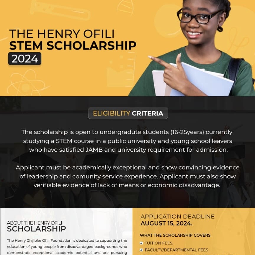 APPLY: Destiny Trust-Henry Ofili Foundation Announces STEM Scholarship for Indigent Students