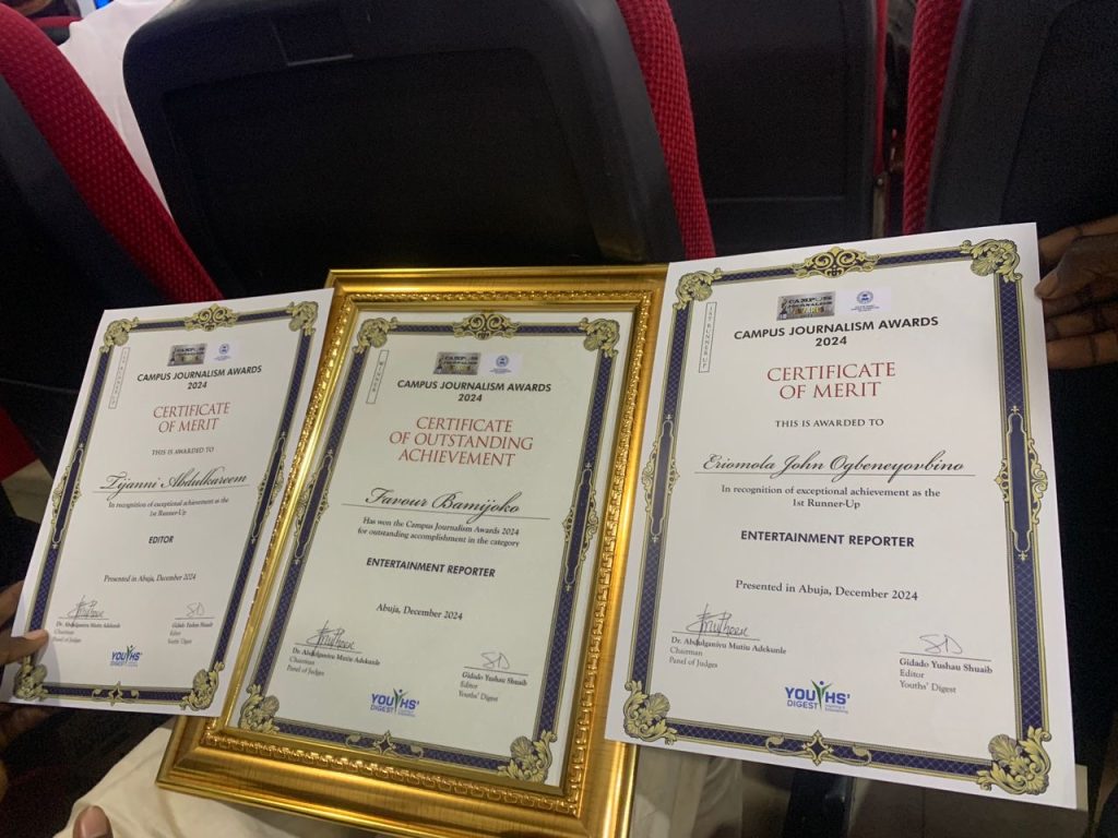 An Editorial of the Union of Campus Journalists, University of Ibadan (UCJUI), including reports written by two members of UCJUI shine in the Youth Digest National Campus Journalism Awards (CJA) 2024.