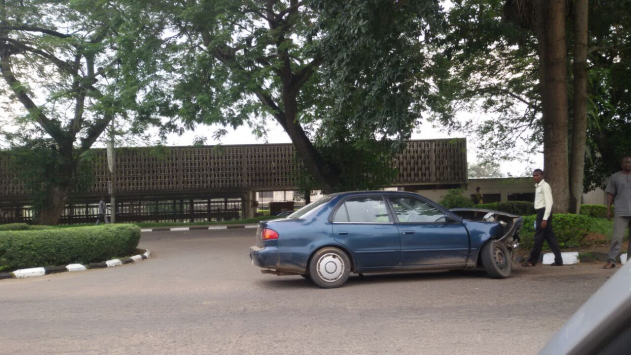 On the 15th of November , due to the convocation ceremony taking place in the school, there has been a bee hive of activities ranging from parents and relatives of the graduating student trooping into the school with truck load of food and even instruments for entertainment to celebrate with loved ones to undergraduate students moving from one tent to another in a bid to get free food in the usual student way, due to this influx in population trooping into the premises, traffic became heavy and the intensity of the sun was not even helping matter. It therefore did not come as a surprise when cab drivers refused to convey passengers to their destination and so people resulted to trekking to their various destinations. About past 4 o clock, there was an auto crash that ensured around Queen Elizabeth II hall which included a car colliding into another as a result of the heavy traffic.convo