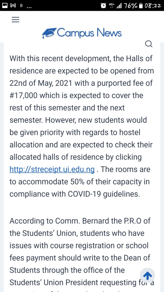 It should be noted that since the Senate meeting came to an end UI management is yet to make an official statement concerning the amount that would be paid as accommodation fee for the remaining part of the 2020/2021 academic session.