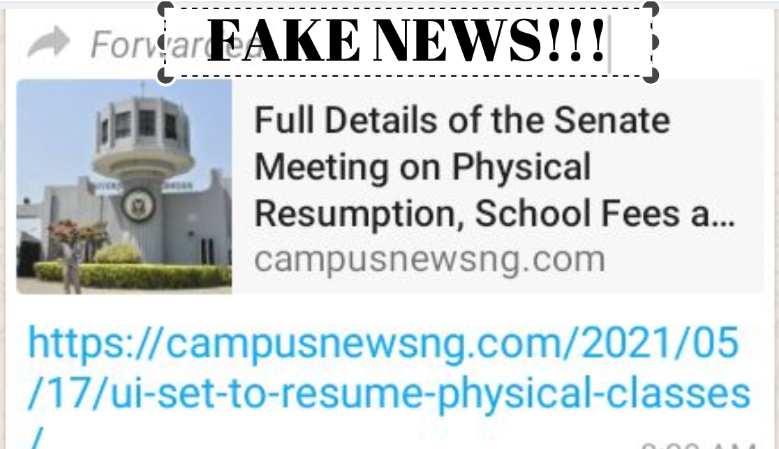 A report titled “Full Details of the Senate Meeting on Physical Resumption, School Fees and Others” made by a student-owned blog with the name Campus News made rounds on whats pp groups yesterday, May 17th immediately after the Senate meeting held at the UI Trenchard Hall.