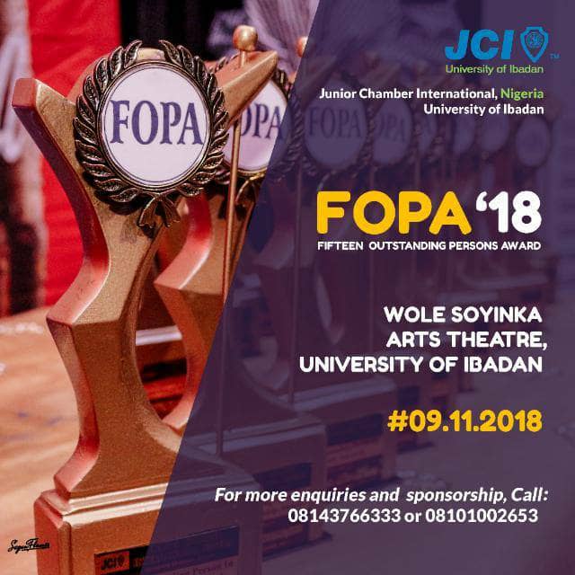 The Junior Chamber International, University of Ibadan, has announced the final three shortlists for the award of the Fifteen Outstanding Persons’ Award (FOPA) for this year.