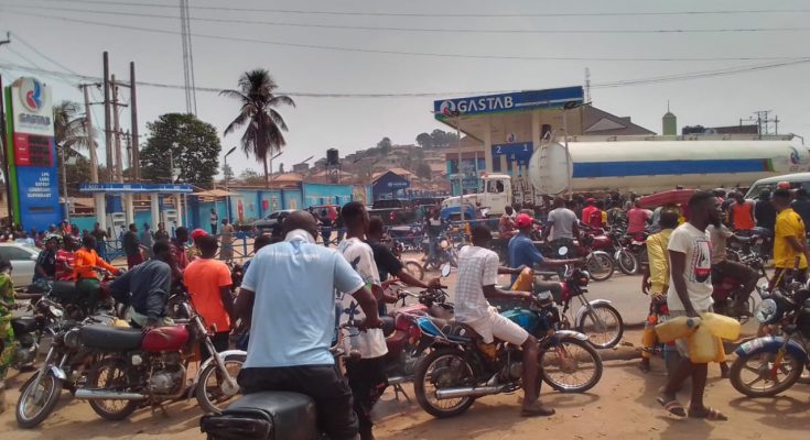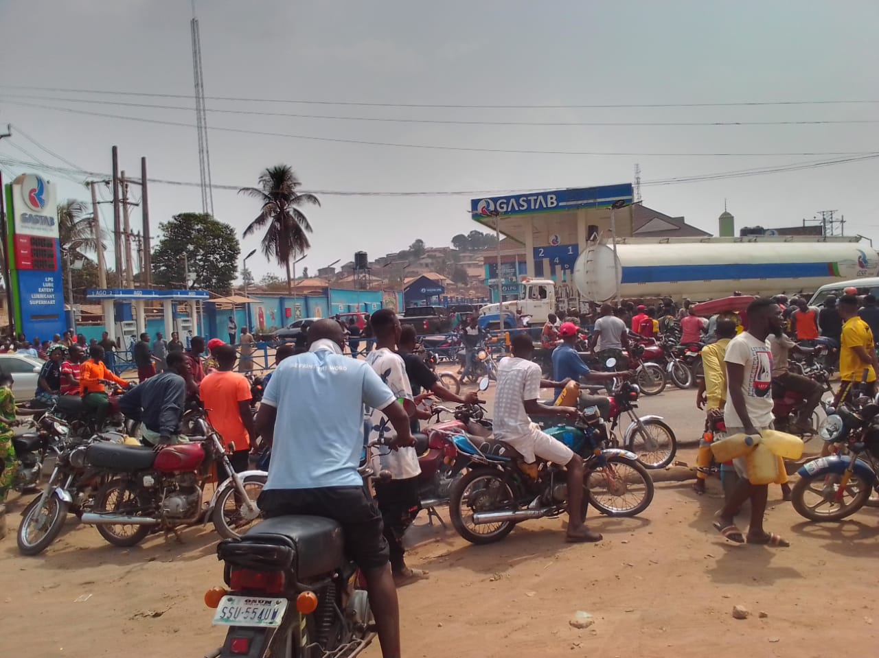 His first stop was at the Mobil filling station, Opposite the University of Ibadan, there, he met a queue of bike-men, cars and keg owners. He tarried for a while before he walked up to one of the workers in the filling station. The man, in his fifties pitifully noted, “they have failed to sell it. In fact, I have had a customer’s keg with me for the past three days, and they can’t even sell it to me, one of their own. Such a pity.”