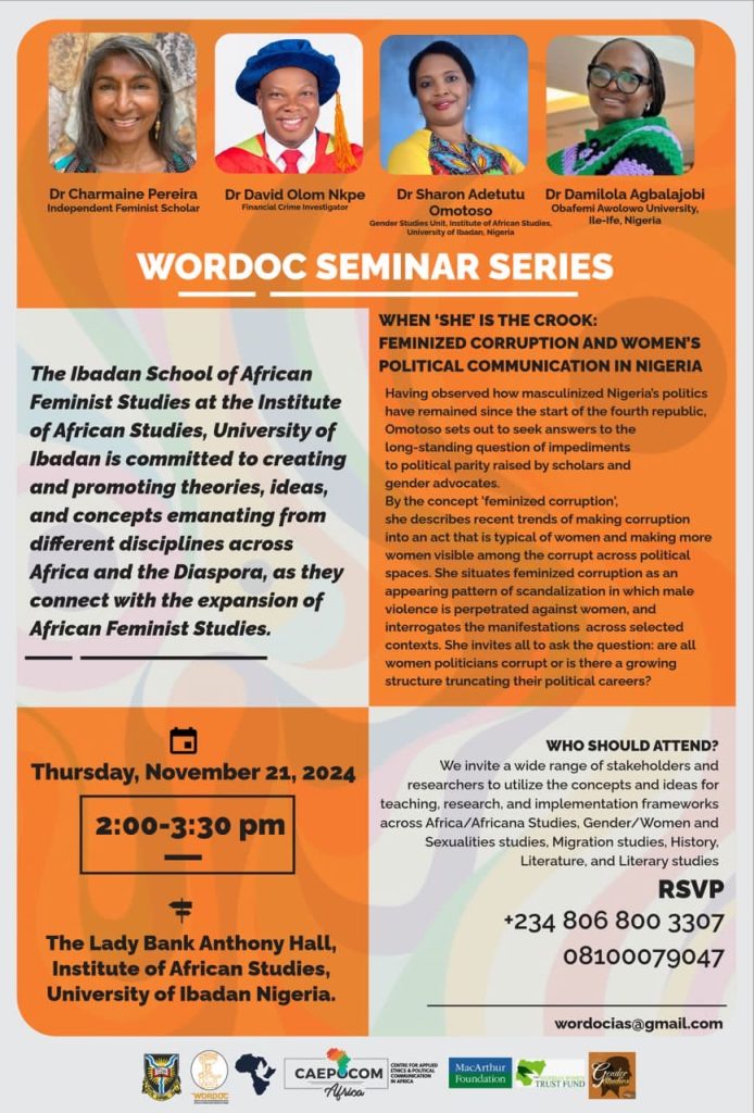 This series titled: “When She is the Crook: Feminized Corruption and Women’s Political Communication in Nigeria” is set to hold at the