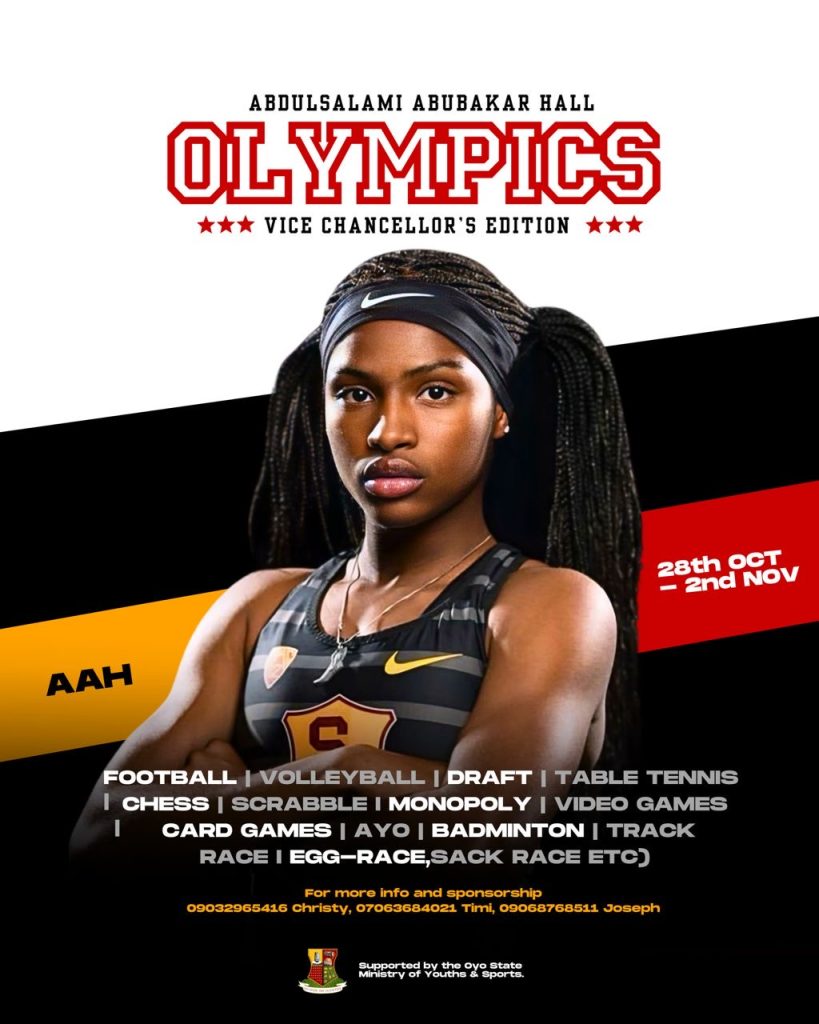 The Abdulsalami Abubakar Hall (AAH), a post-graduate hall in UI, commences the Vice Chancellor’s Edition of the AAH Olympics, a week-long sports event, on Monday, October 28, and concluding on Saturday, November 2.