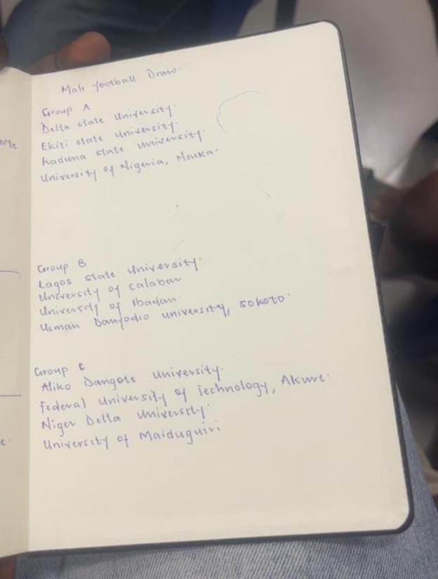 The draw for the male football event at the 2025 Nigerian University Games Association (NUGA) had been released on Friday 7th November 2025, with the University of Ibadan placed in Group B.