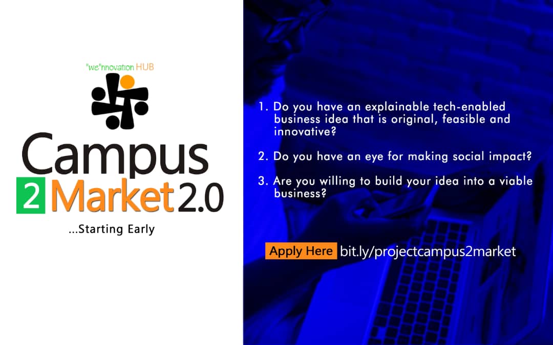 Campus Startup Challenge (Campus2Market) is aimed at developing the Innovative Business and Tech Communities springing out of campuses around Nigeria especially in Oyo State, providing them with leverage for sustainable businesses and showcase the great business potentials that can scale across the African region and globally.
