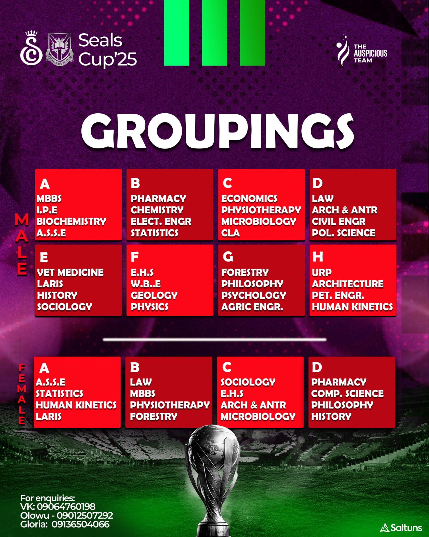 For the Female category, last year’s defending Champions, Arts and Social Science Education were grouped alongside Statistics, KHE and LARIS in Group A.