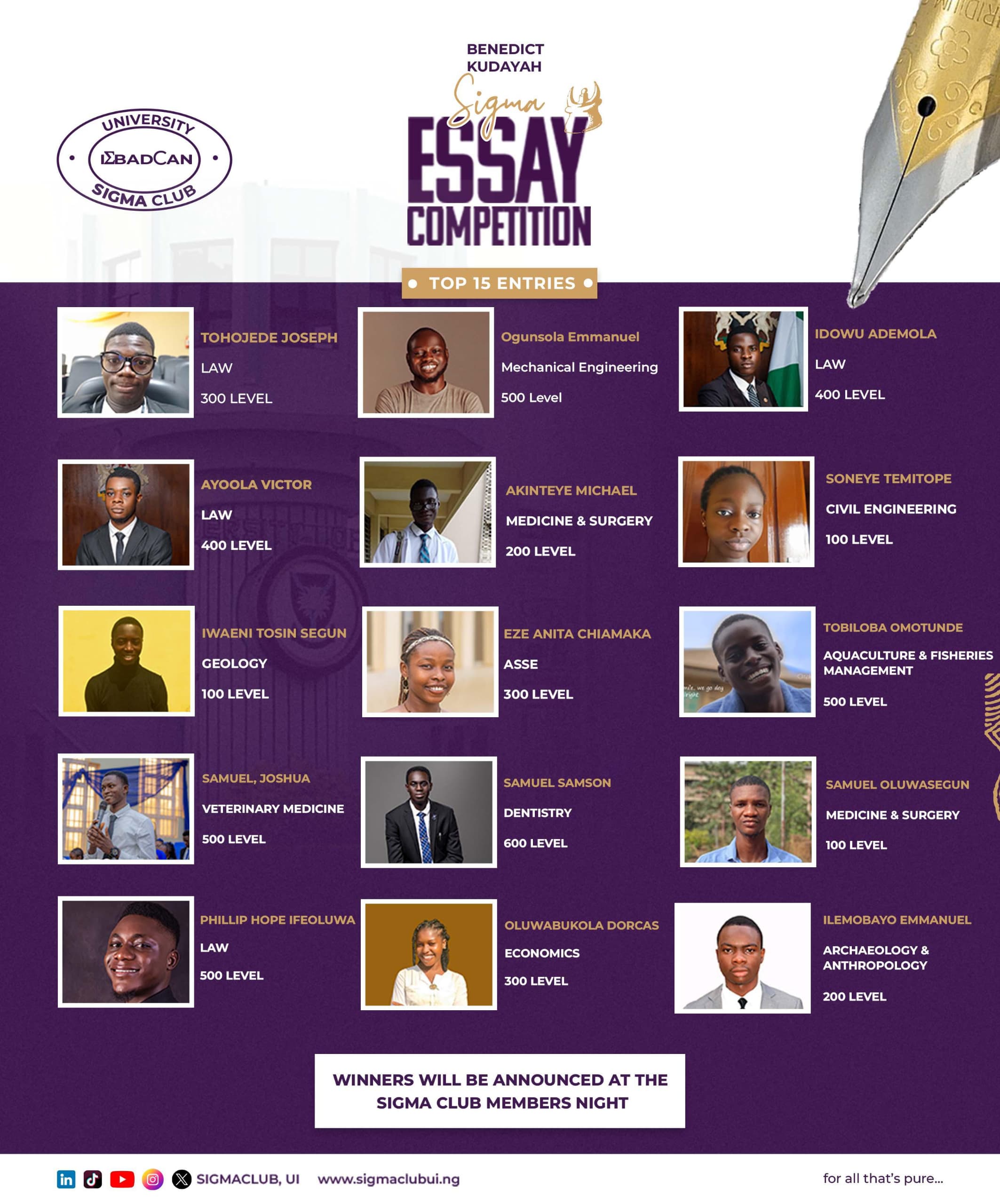 The essay competition was opened to students of the University of Ibadan and 15 entries made the shortlist.