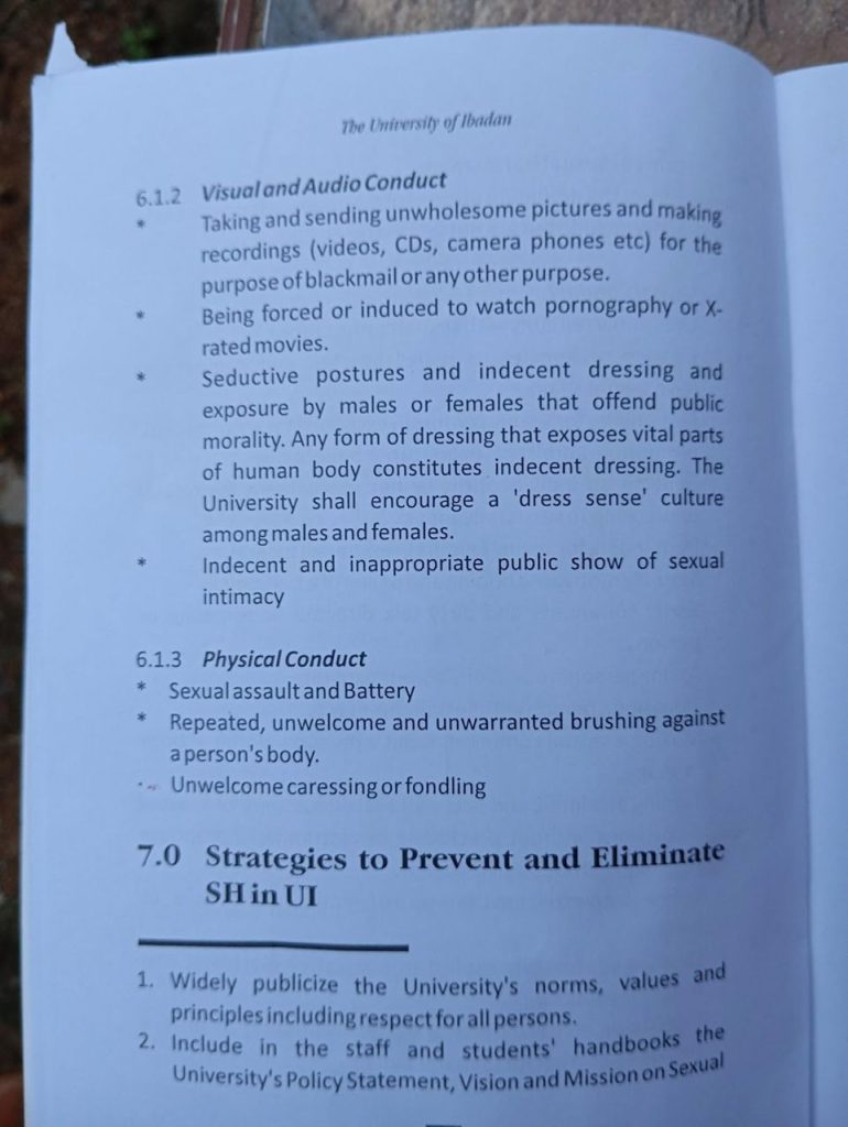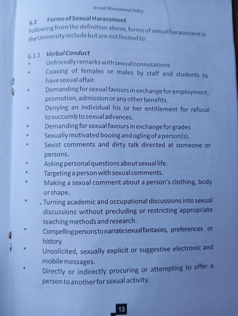 Page 13 and 14 of University of Ibadan Sexual Harassment Policy