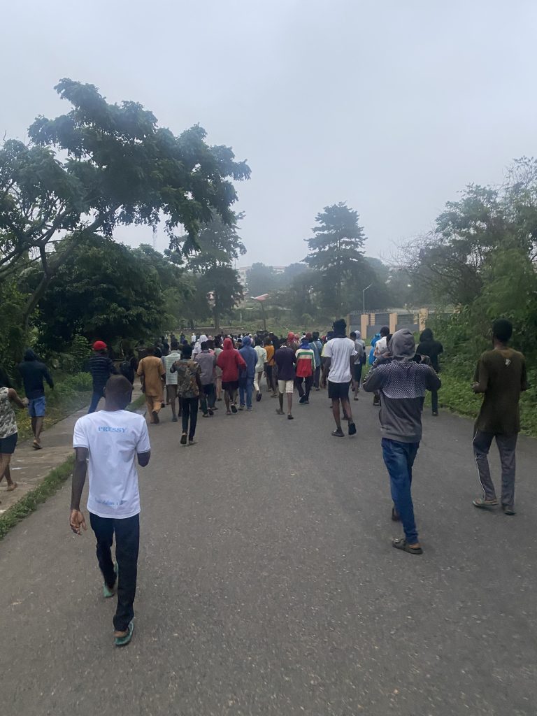 The protest which started from the Zik-Indy axis, has extended to Awo, as protesters now head towards halls of residence in the SUB arena.