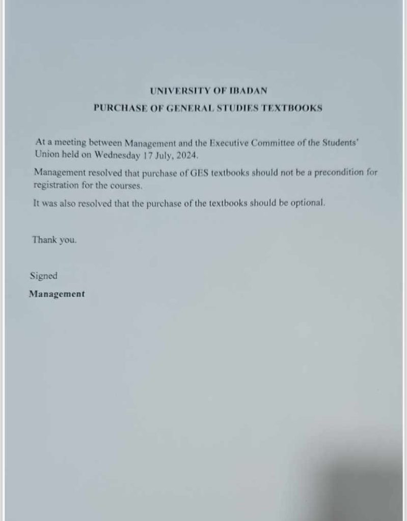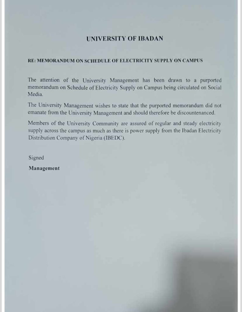The University of Ibadan Management has debunked the electricity memo that made the news earlier in the week and also resolved that the General Studies (GES) Textbook is now optional for students.