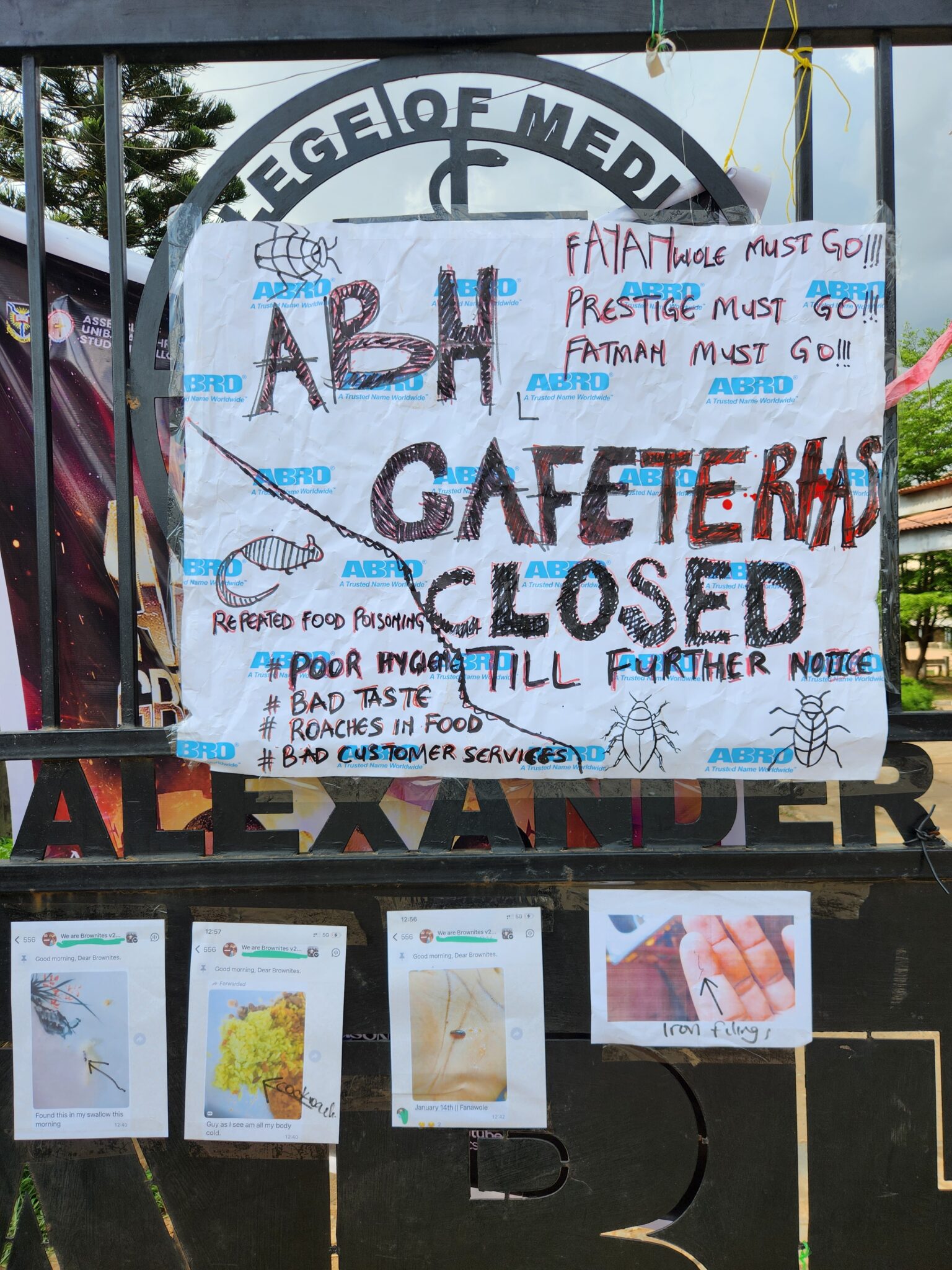 The students read the memo. However, they decided they had had enough and couldn’t wait for repeat offenses. Then they made cardboard posters, walked to the cafeteria, and shut it down themselves. A notice went up at the hostel entrance signifying the closure of the cafeteria.