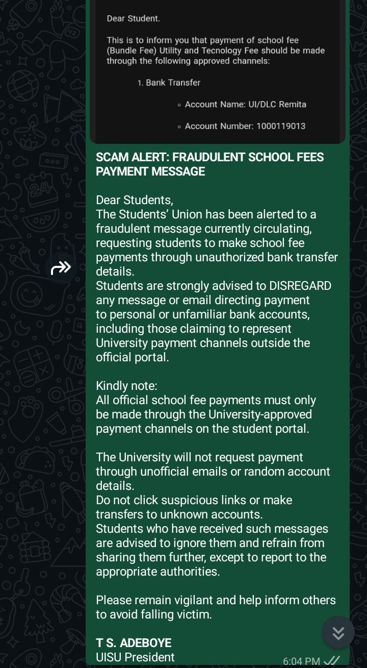 The “WhatsApp-ification” of the UI’SU is not just an aesthetic problem; it is a security and credibility nightmare. When a Union President decides that his primary mode of communication is his WhatsApp status or a WhatsApp broadcast message, he invites several systemic risks; in an era of deepfakes and easy screenshot manipulation, a WhatsApp message is the easiest form of communication to forge. Without the physical markers of a formal letter, the dry-ink signature, and the official stamp, any malicious actor can circulate a “typed” message claiming to be from the President.