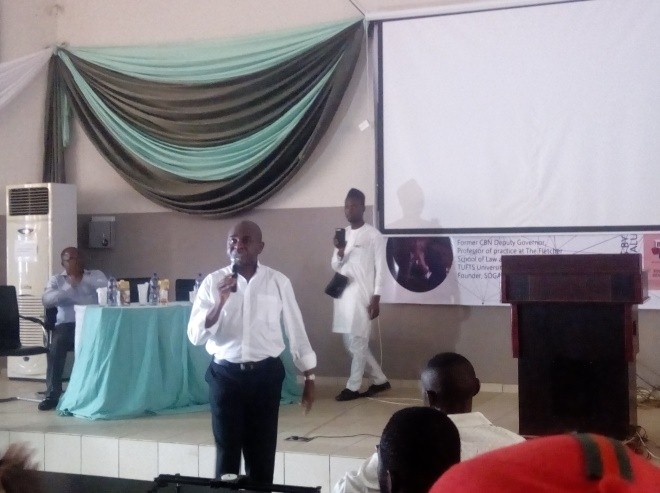 Before the arrival of the keynote speaker, people were weary as they’ve sat for more than two hours and yet they keep saying that Prof. Moghalu will soon arrive. Around 3:26 pm, the keynote speaker arrived. Things changed as the atmosphere was seasoned by encapsulating and invigorating sentences from the main man of the day. After his citation, he started by introducing himself before diving deep into the topic of the day. Prof Kingsley explained that there must be a citizen before leader will emerge. And an active citizen does the right thing at the right time. He explained that leadership involves motivation, calculation, thinking and taking of calculated risks. And that the leadership may sometimes break a nation.
