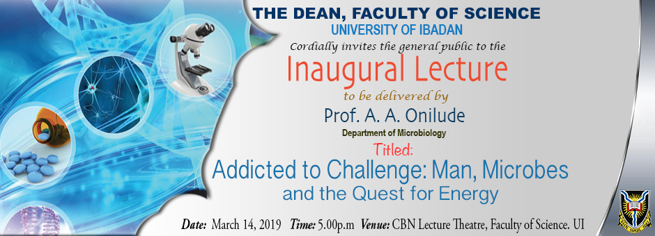 The lecture titled “Addicted to Challenge: Man, Microbes and the Quest for Energy” to be delivered by Professor Onilude which was earlier scheduled to hold at Trenchard Hall but was shifted to CBN lecture theatre because of the windstorm that damaged facilities in the University including Trenchard Hall will now hold at the University’s International Conference Centre.